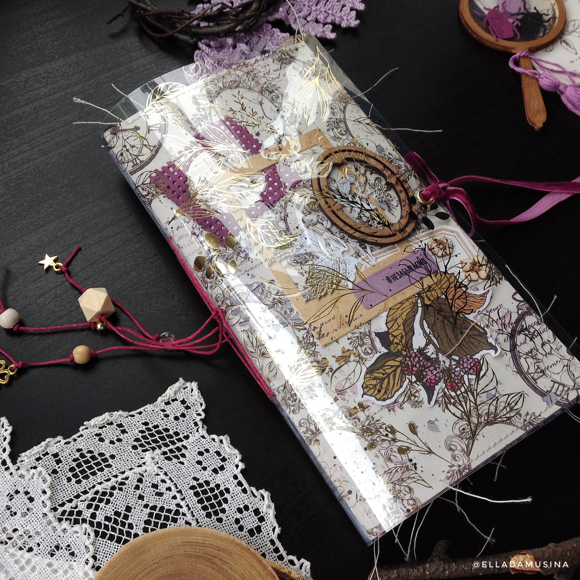 Фотографии, сделанные во время одной летней прогулки по парку у Яузы, легли в основу этого альбома-журнала и задали его палитру. Фиолетовый, лиловый, малиновый и их оттенки - вот цвета и настроение моего лета.Конструкция альбома проста - две тетрадки и обложка из прозрачного пластика с фольгированным рисунком. А внутри - фотографии, скрапбумага в тон и много-много вырубки ножами Мимикат.