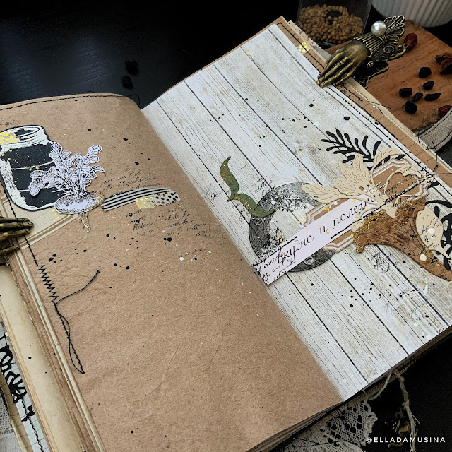 А внутри добавились еще 2 тетрадки. В них нашли своё место несколько баночек (набор Баночка про запас), а в них - запас витаминов на зиму (наборы Праздник урожая, Грибные места), а также сушеные пряные травы (ножи Тархун, Малиновый цвет, Шёпот трав).