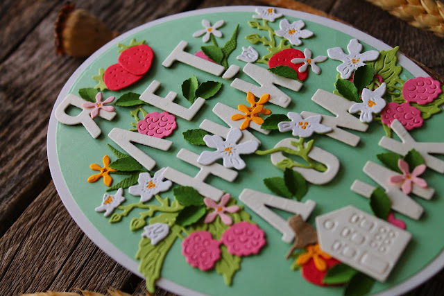 Для работы использовала ножи : "Крупными буквами", "Под колпаком (клубника, мелкоцвет)," Малиновый цвет"," Домимики" (обрезала крышу).